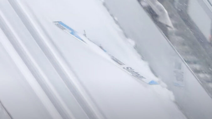 Bei dem „Ausreißer“ handelte es sich ersten Informationen zufolge um das Arbeitsgerät von Domen Prevc. Der Slowene musste noch im Aufwärmraum tatenlos zusehen, wie sich sein Ski verselbstständigte und die eisige Anlaufspur und später auch den Aufsprunghang heruntertuschte.